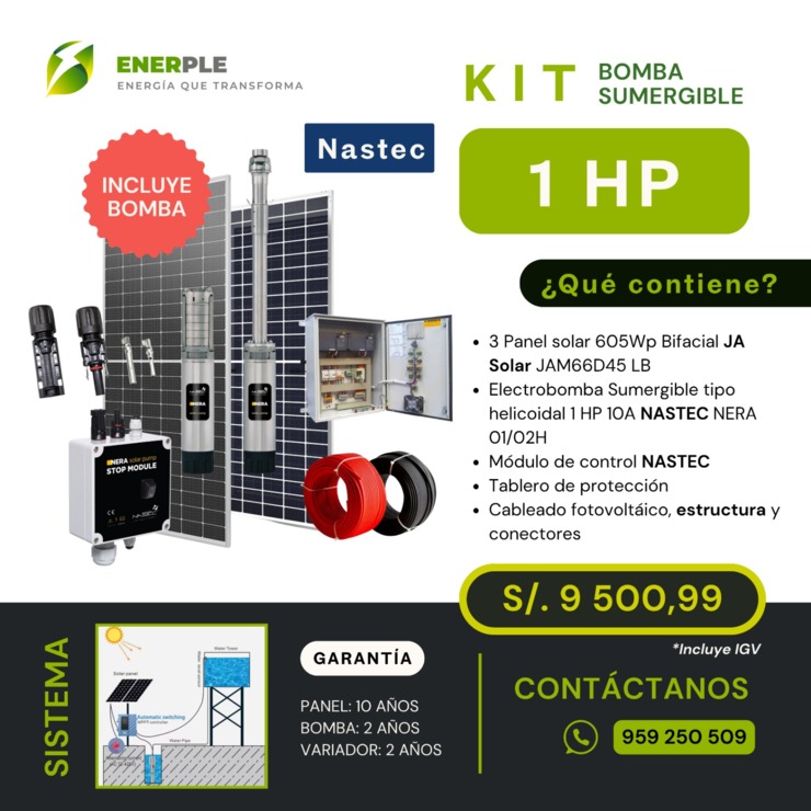 KIT BOMBA SOLAR SUMERGIBLE 1 HP - NASTEC