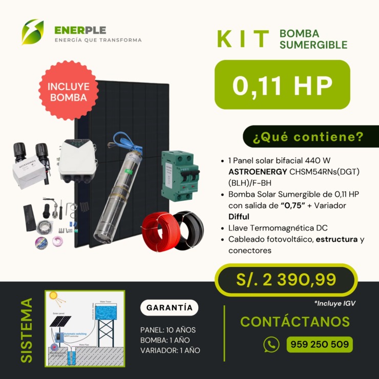 KIT BOMBA SOLAR SUMERGIBLE 0.11 HP