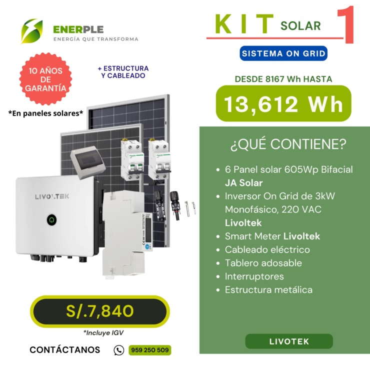 KIT SOLAR 1 ON GRID (13,612 Wh/día) - LIVOLTEK